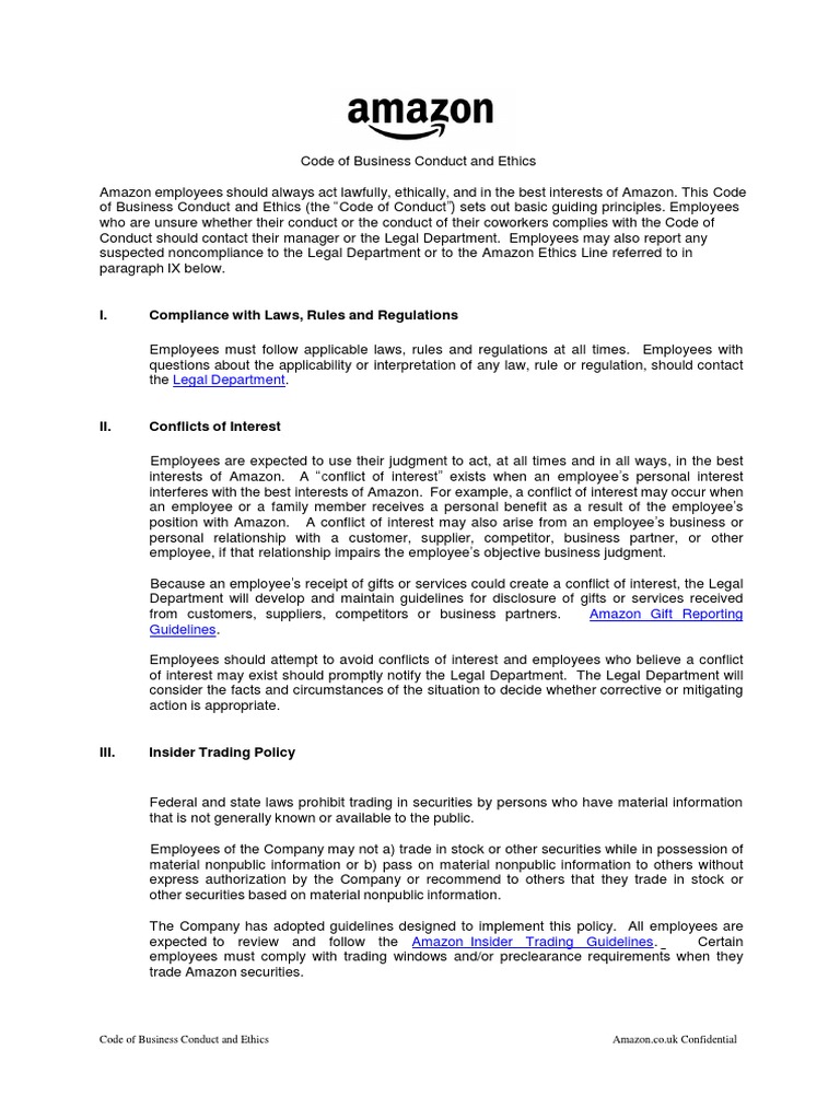 Amazon Company Hrm Policy Pdf Insider Trading Bribery